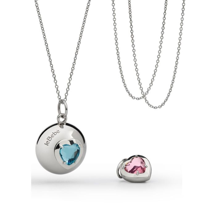 Collana Le Bebè Suonamore in argento con due pietre colorate e un ciondolo cuore addizionale