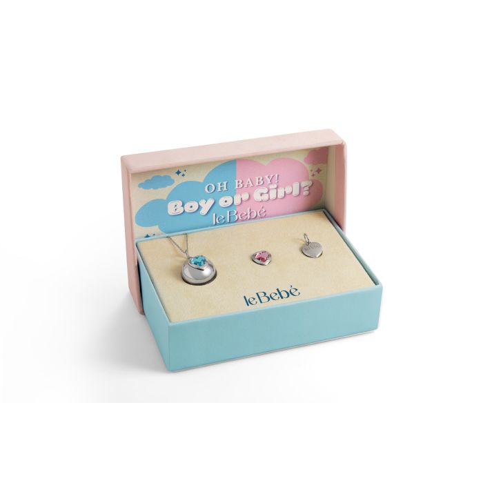 Collana Le Bebè Suonamore in argento con due pietre colorate e un ciondolo cuore addizionale
