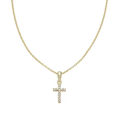 Collana Amen Croce Pendente Dorata con Zirconi Bianchi