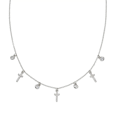 Collana Amen Multicharm Croci e Zirconi Bianchi