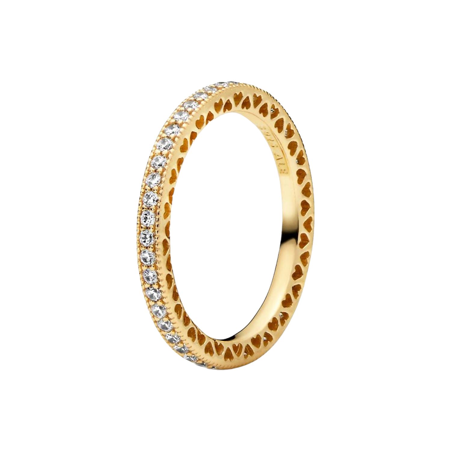 Anello Pandora cuori scintillanti con placcatura in oro 14 kt