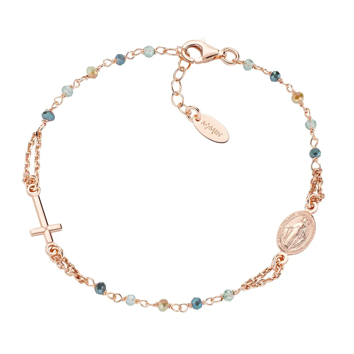 Bracciale Argento 925 e cristalli multicolor verde – Rosè – Lunghezza 18 cm + 2 cm