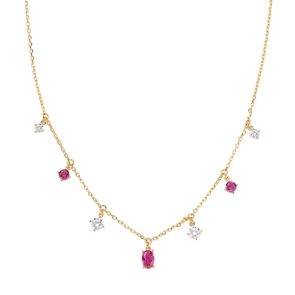 Collana Amen Chandelier Princess Dorata con Zirconi Rubino e Bianchi