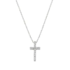 Collana in argento 925 rodiato con croce pendente da 1,5 cm e zirconi bianchi. Lunghezza regolabile da 40 a 45 cm con catenina di allungo e chiusura a moschettone.