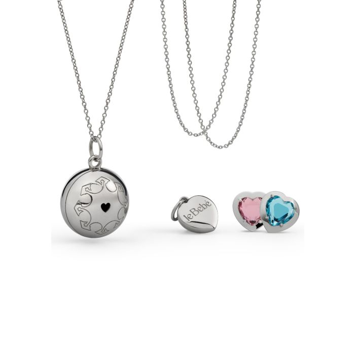 Ciondolo “Oh Baby” in argento con pietra azzurra e pietra rosa intercambiabili, con piccolo ciondolo cuore addizionale