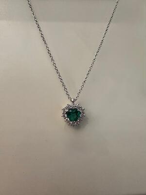 Collana Recarlo in oro bianco 18kt con pendente cuore di diamanti e smeraldo.
